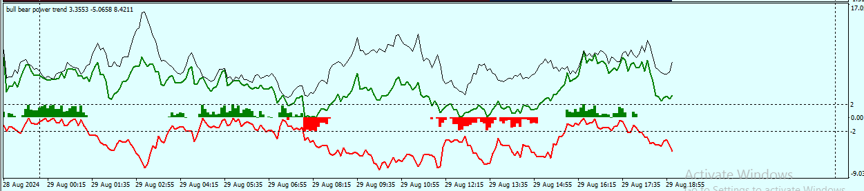 plot(reg_trend_on == true?reg_trend:na, title='Trend', color=#000000, linewidth=1, style=plot.style_line, transp=0)The "Bull Bear Power Trend" employs the Average True Range (ATR), high and low prices, along with Linear Regression, to provide robust trading signals and forecast market trends.