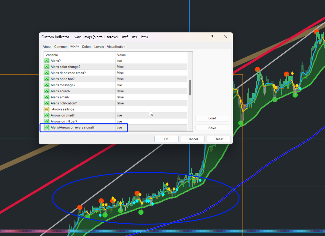 My alert settings are looking like this. I don't get any alert. When I choose Alerts/Arrows on every signal there are almost too many arrows drawn.mrtools wrote: Tue Sep 17, 2024 2:16 am Should alert that way if you change the setting arrOnEverySig to true.