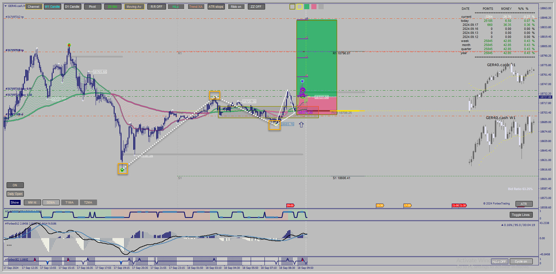 Example of live entry with R:R 4:1 GER40.cash M5 18.09.2024