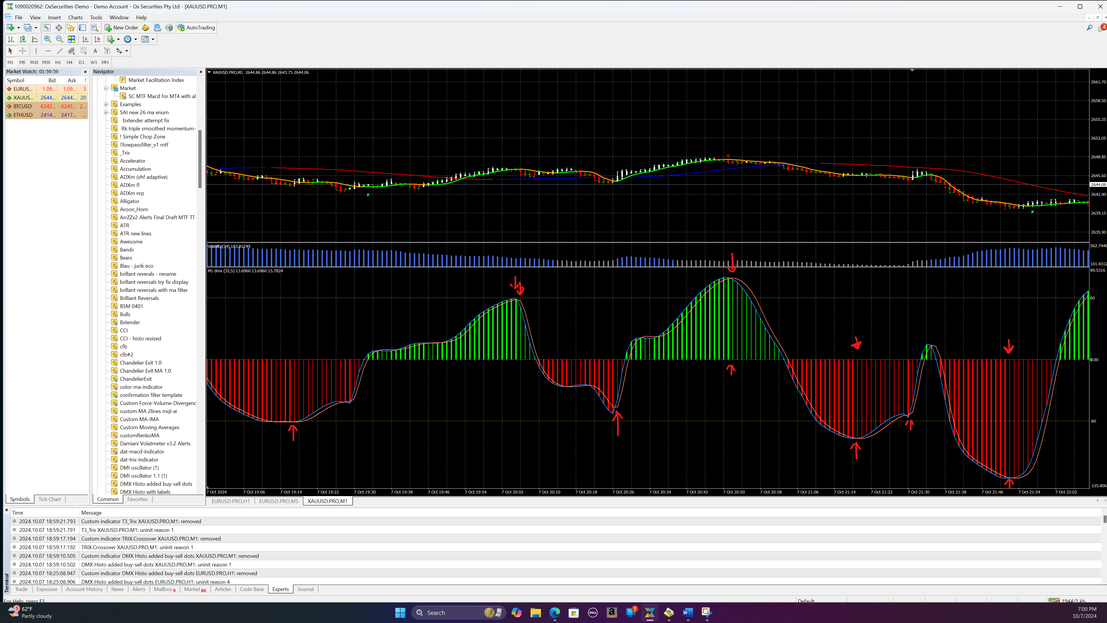 hello i am trying to add dots for buy and sell to this dmx histo and its giving me a little bit of trouble. i was hoping if i seen it done i could figure it out and get a better understanding of how the code functions. i wanted the dots red for sell (or what ever color) green for buy. i was trying to plot on the dmx line and/or the signal line where it crosses i thought at the first skinny bar after the bold bars would be an ideal location green dots on the red histo and red dots on the green histo. i tried to draw arrows at the preferred locations. was hoping i could get some help with this. thanks in advance for any assistance. was hoping once i seen it done i might be able to figure out how to do it. all my attempts so far have not worked