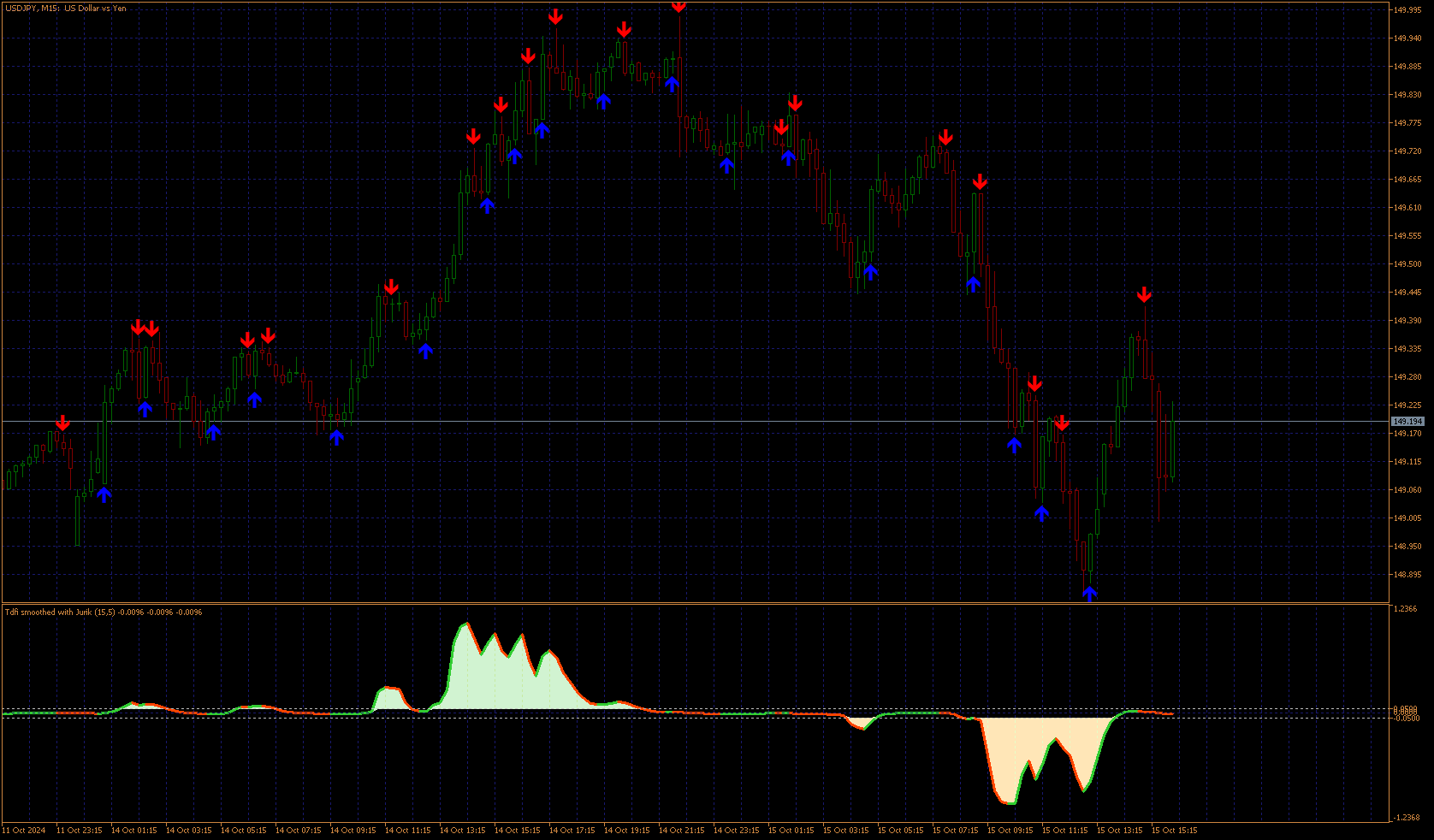 in this case so that the arrows (signals) that appear in the indicator window are transferred to the main chart.