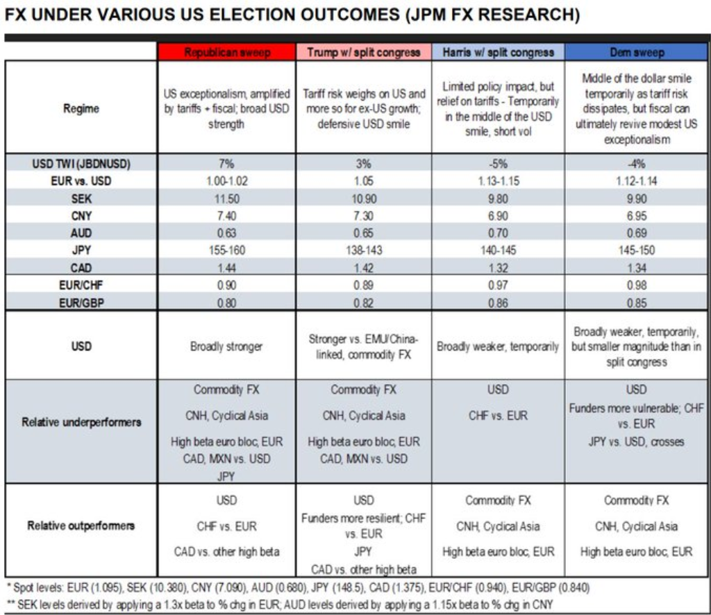 JPM's U.S. Election Scenario Cheat Sheet For FX Markets.