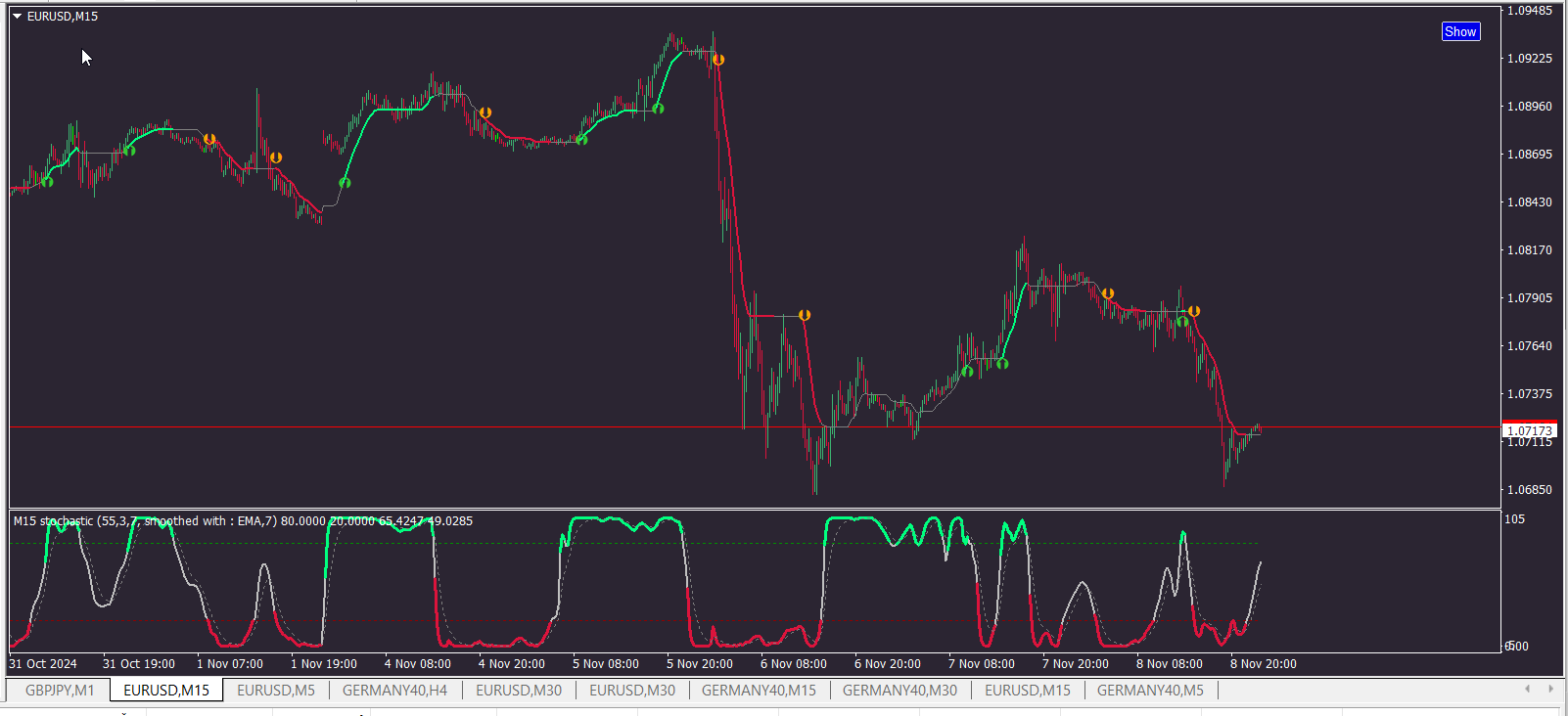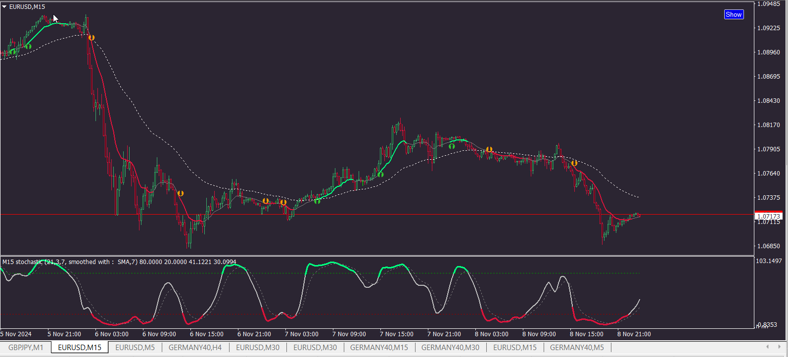 - Stochastic version here: 2x MA Cross Filtered with Stochastic (previous version with MTF).
