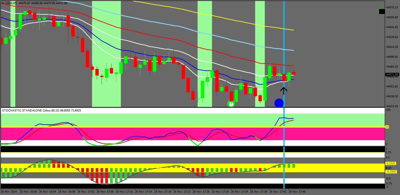 The 15m stochs signal is from the K/D cross in the 15m chart.