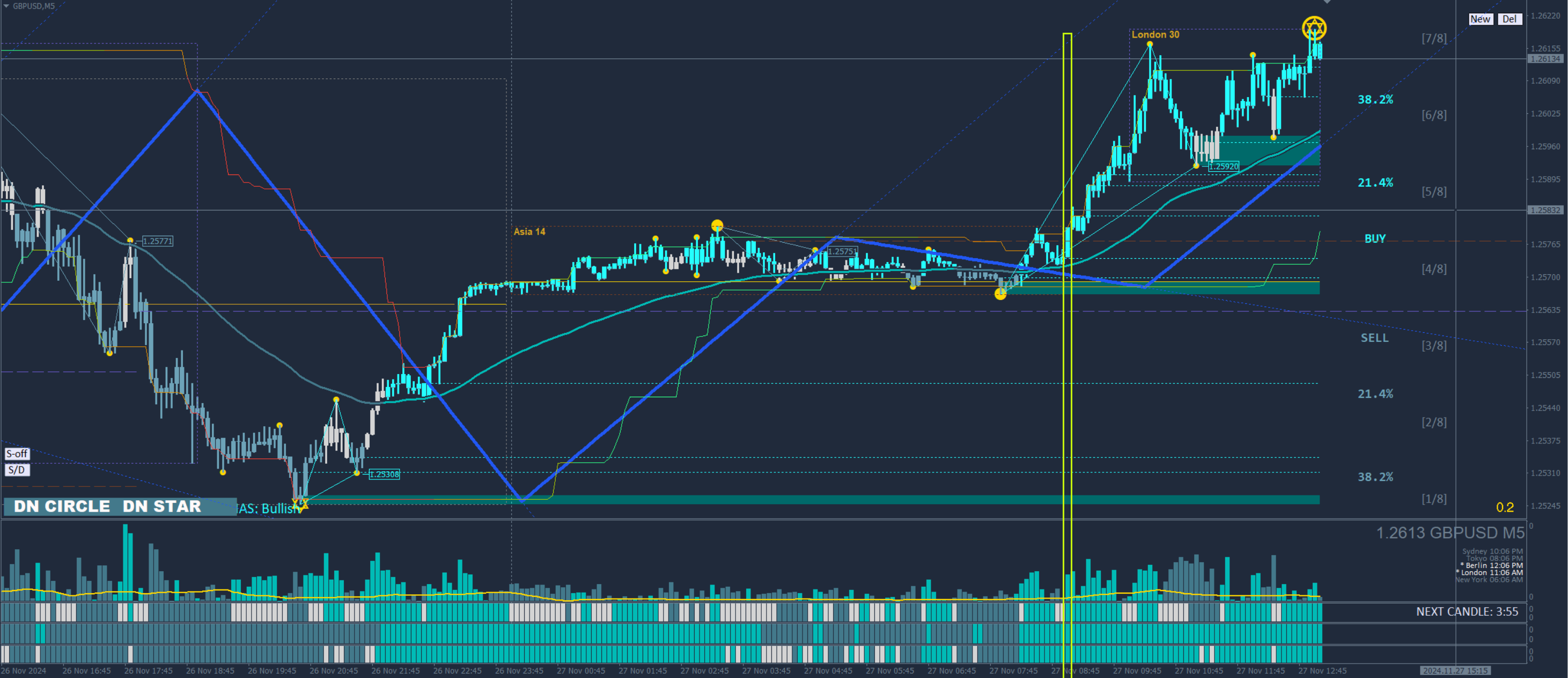 Beautiful pullback on the 55 EMA after second dot and donchian zigzag breakout. Trade could stay open up to 1.263, that is the final target.