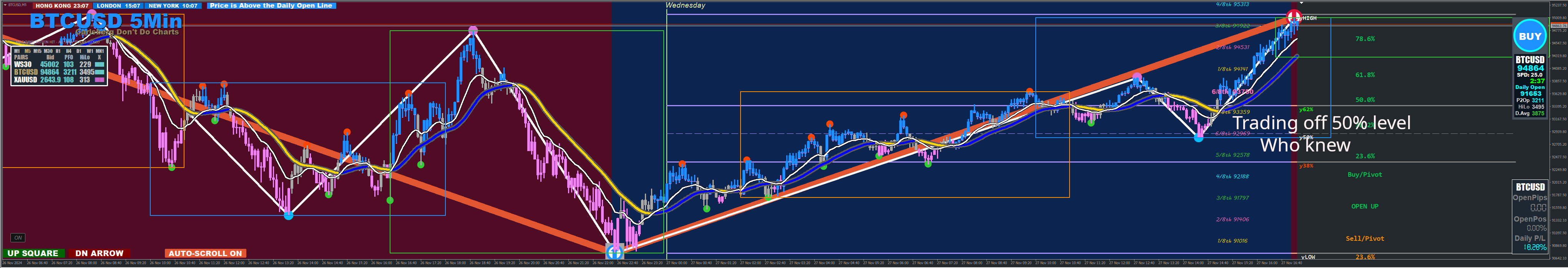 Observe the price as it bounces back from the midpoint between yesterday's high and low, and then crosses the EMA line.