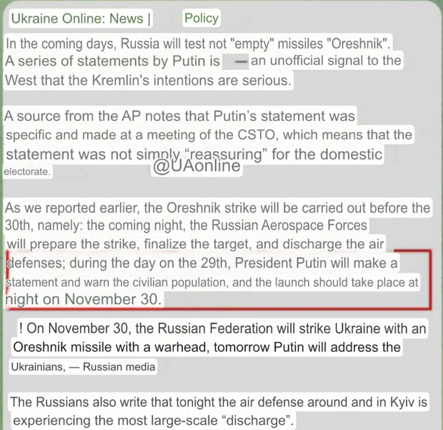 Putin signals Oreshnik strike on Kiev 'decision making' centres (Zelensky's bunker).