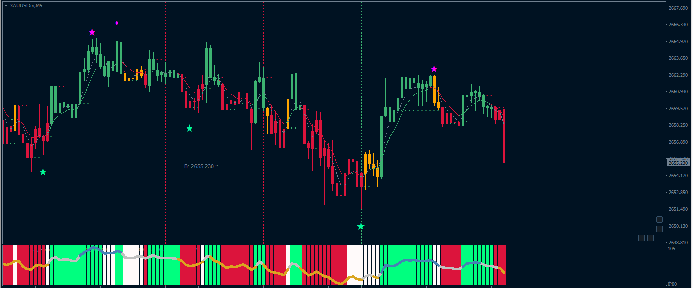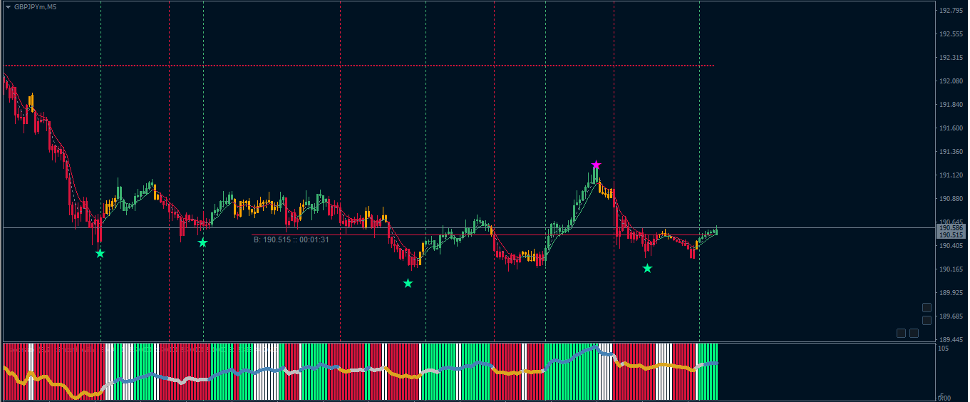 I have attached screenshots of the system, again no testing has been done so I don't know know how each indicator behaves, so if any indictaor does repaint please change the settings to suit your trading style.