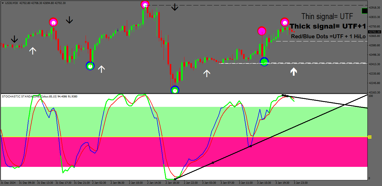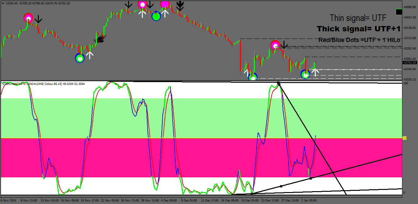 All the traps are hand drawn and use the FAST number on the stochs indi from where they are in the very o/b or o/s areas.