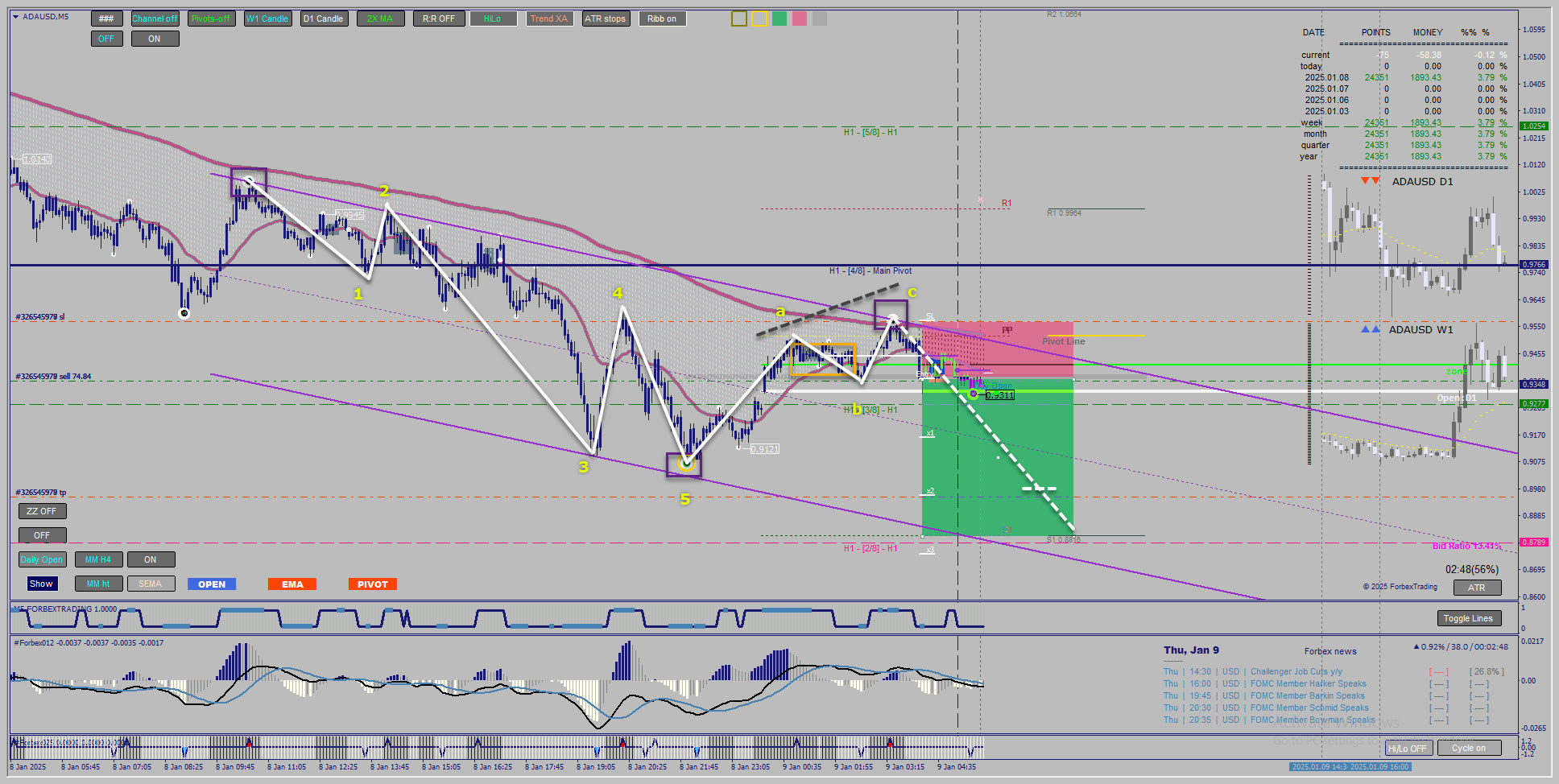 Indicator Confirmation: Both the Forbex oscillators and MACD hint at bearish momentum, but the lack of follow-through below the daily open weakens the conviction for an aggressive short.