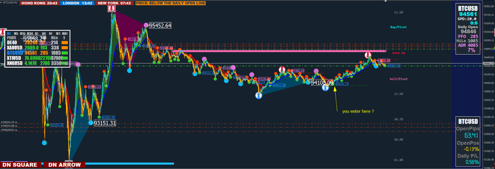 I’m a big fan of your trading strategy, as well as of Curioso. I’ve tried several times to understand the logic and criteria behind your trade entries, but I’ve struggled each time. Could you please explain why you entered the trade here and the specific conditions that must be met for an entry? For example, I noticed the price is below the open line and the ADR is under 20%. Do you enter the trade once the star appears, followed by the min-second dot? If so, I’ve observed that this approach doesn’t always win—sometimes it results in a series of losses, like 5 losses to 1 win.