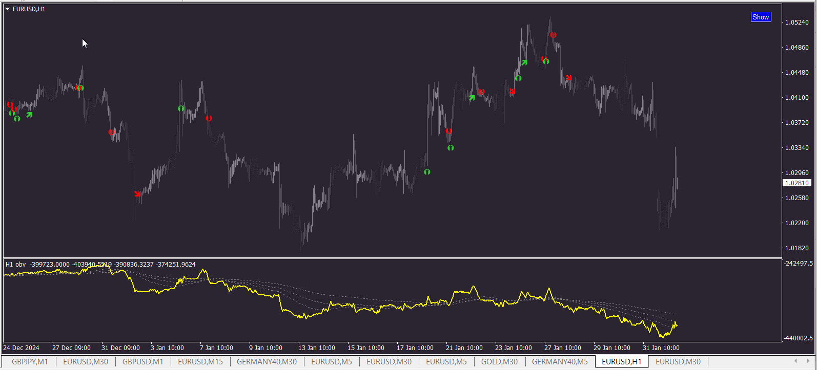 I added arrows/alerts for signals cross and signals cross obv. Test it...