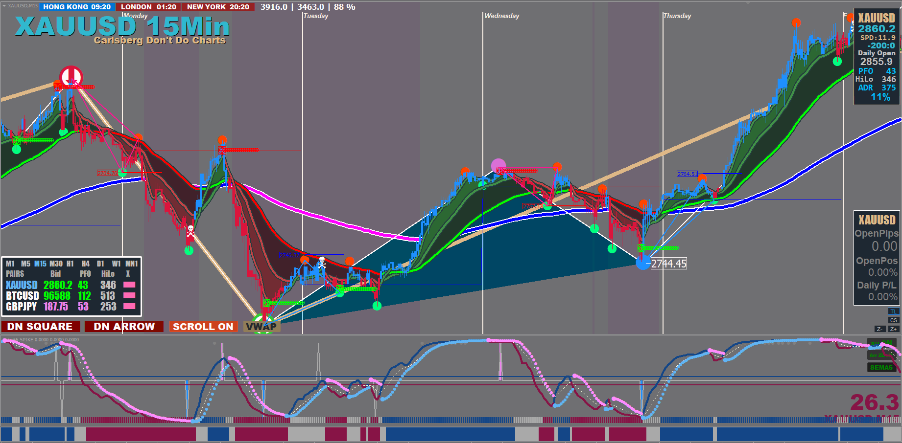 Now enter just one trade MAX with a target set to the next Pink/Blue Dot (baby steps/small wins).