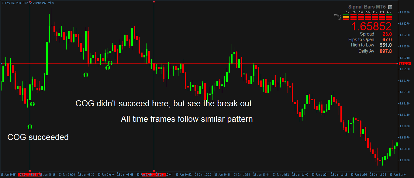 Two ways to trade DynamicCOG, as a trend entry, or as a reversal opportunity when the price Breaks out.