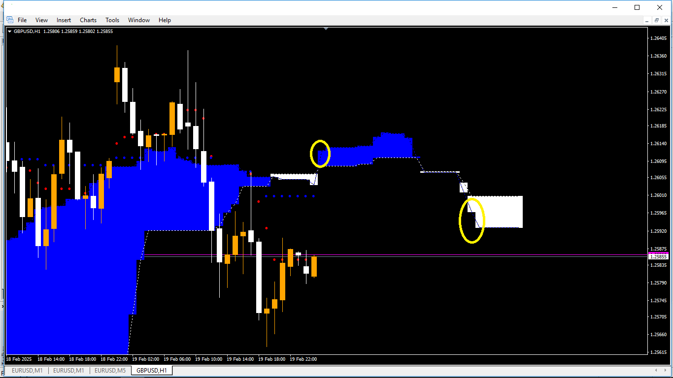 It is possible that that indicator, like Ichimoku MetaTrader, constantly colors the inside of the cloud. This way I may have trouble detecting divergences.