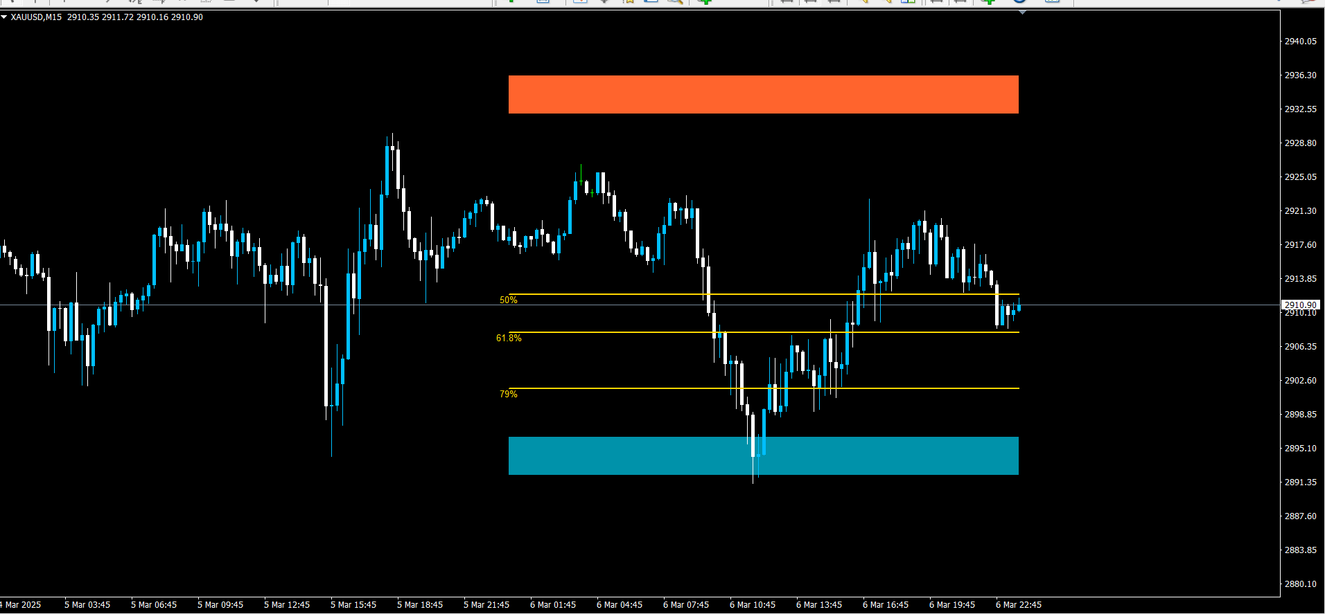 - Look for price reactions at levels (50%, 61.8%, 79%)