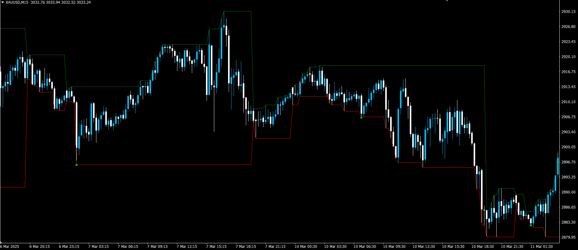 Green Cross Arrow: Price closes BELOW previous block's low