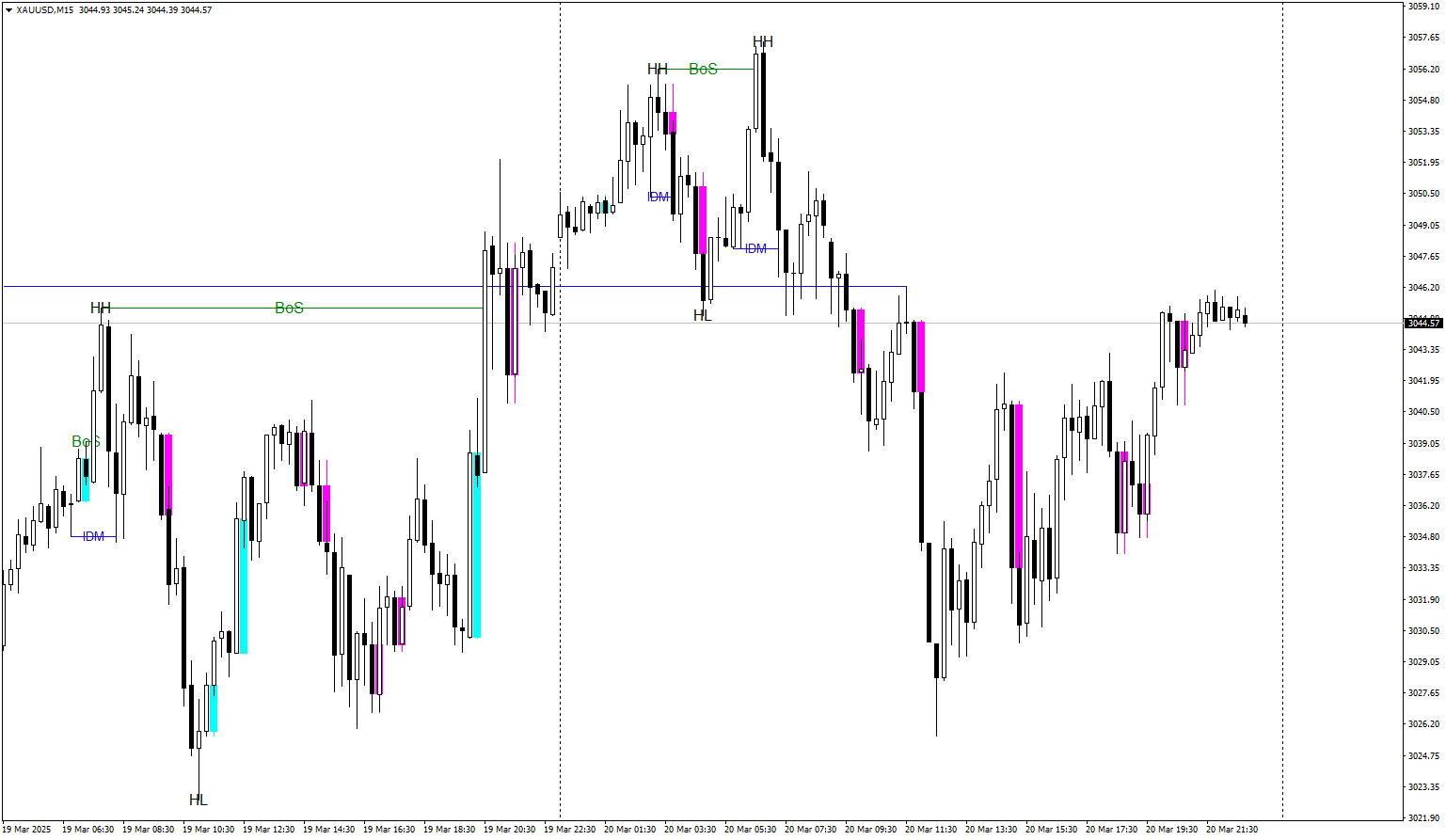 Identifying BOS can help traders determine the direction of the trend and make informed decisions based on market dynamics.