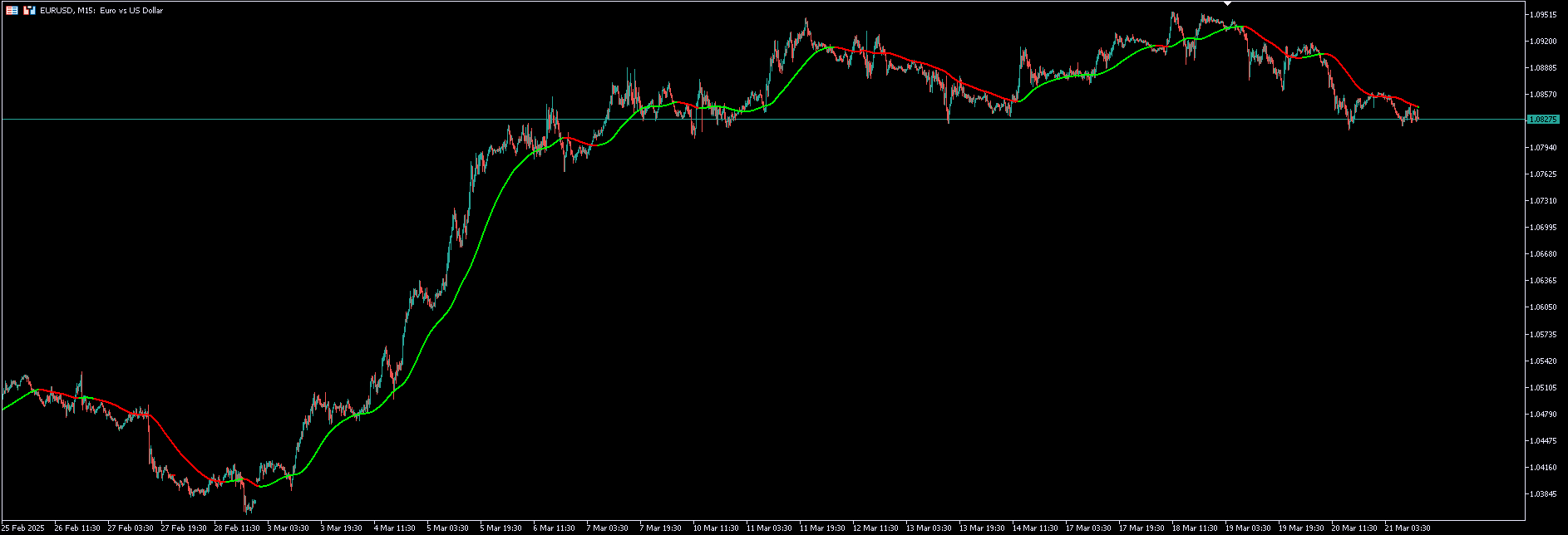Primary Trend EMA: A 25-period EMA is applied to the Kalman-filtered price, serving as the core trend indicator.