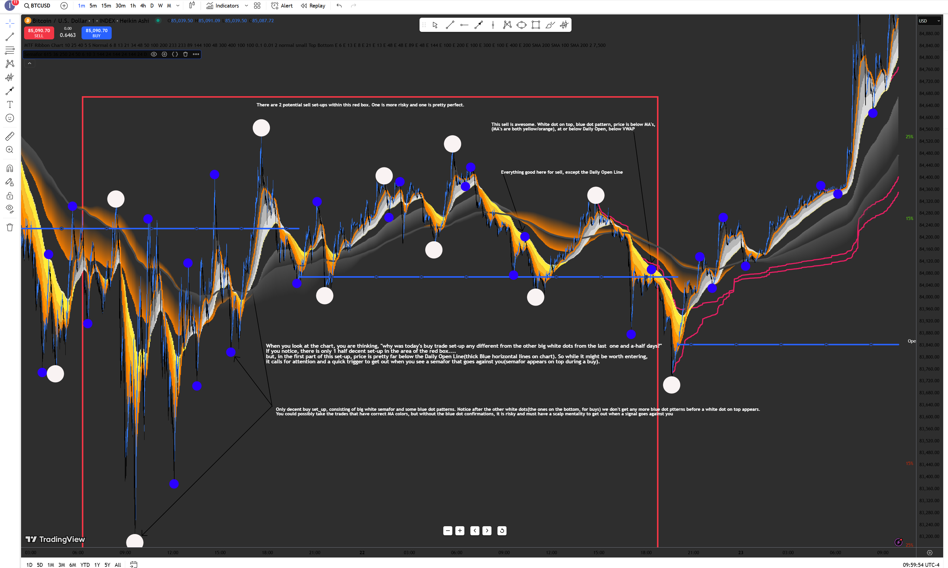 A co-worker has shown interest in learning about Xard’s strategy. Introducing him to how the indicators work/flow together, I saw some things from BTC chart that I noted and shared with him. He’s not an absolute beginner and understands basic market structure, with some mixed results trading experience. Maybe someone else can find a little help as well.