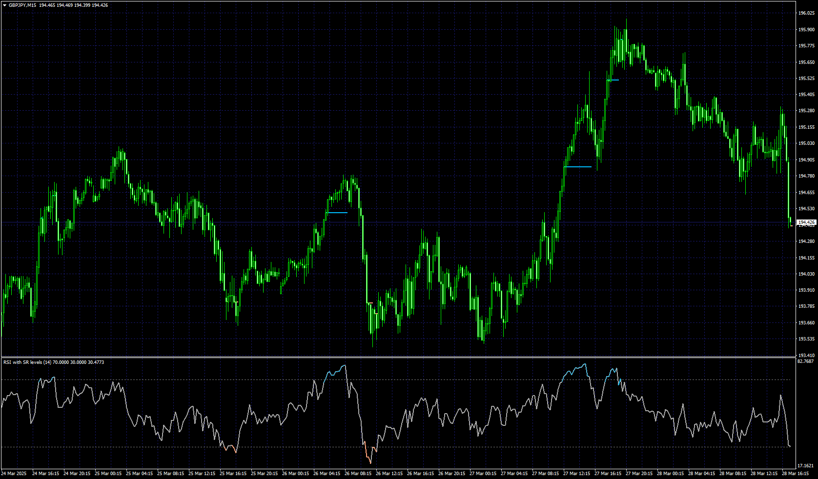 RSI with on-chart Support and Resistance linesUB2022 wrote: Fri Mar 28, 2025 7:57 pm Hello Guys, Blessings to all. This indicator is MT5, however i was just wondering whether it can be converted to MT4 or whether one exists, since it is a great tool for plotting the RSI levels on the main chart. Thanks again.