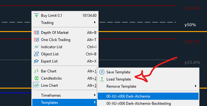 Hi, To load template just do a right click and go to Templates, and after, Load Template.