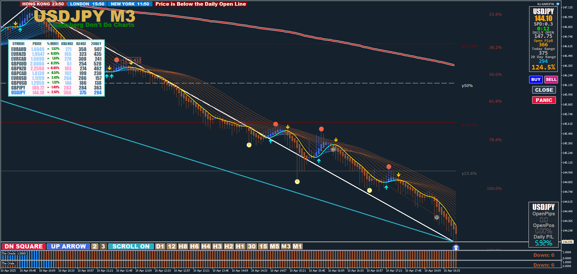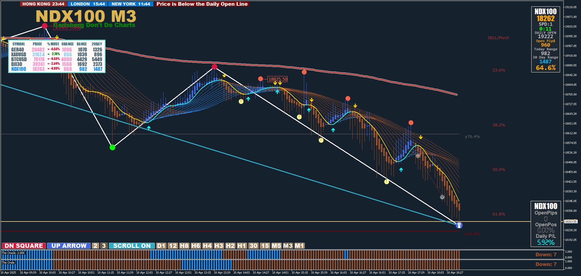 Hello guys. m15 down arrow. m3 pullback which fails to close above the MAs(ribbons). Fresh step MA (arrow down). Sub window (oracle m3 and m15) in agreement. And closed in profit so as not to be greedy and face a pullback.