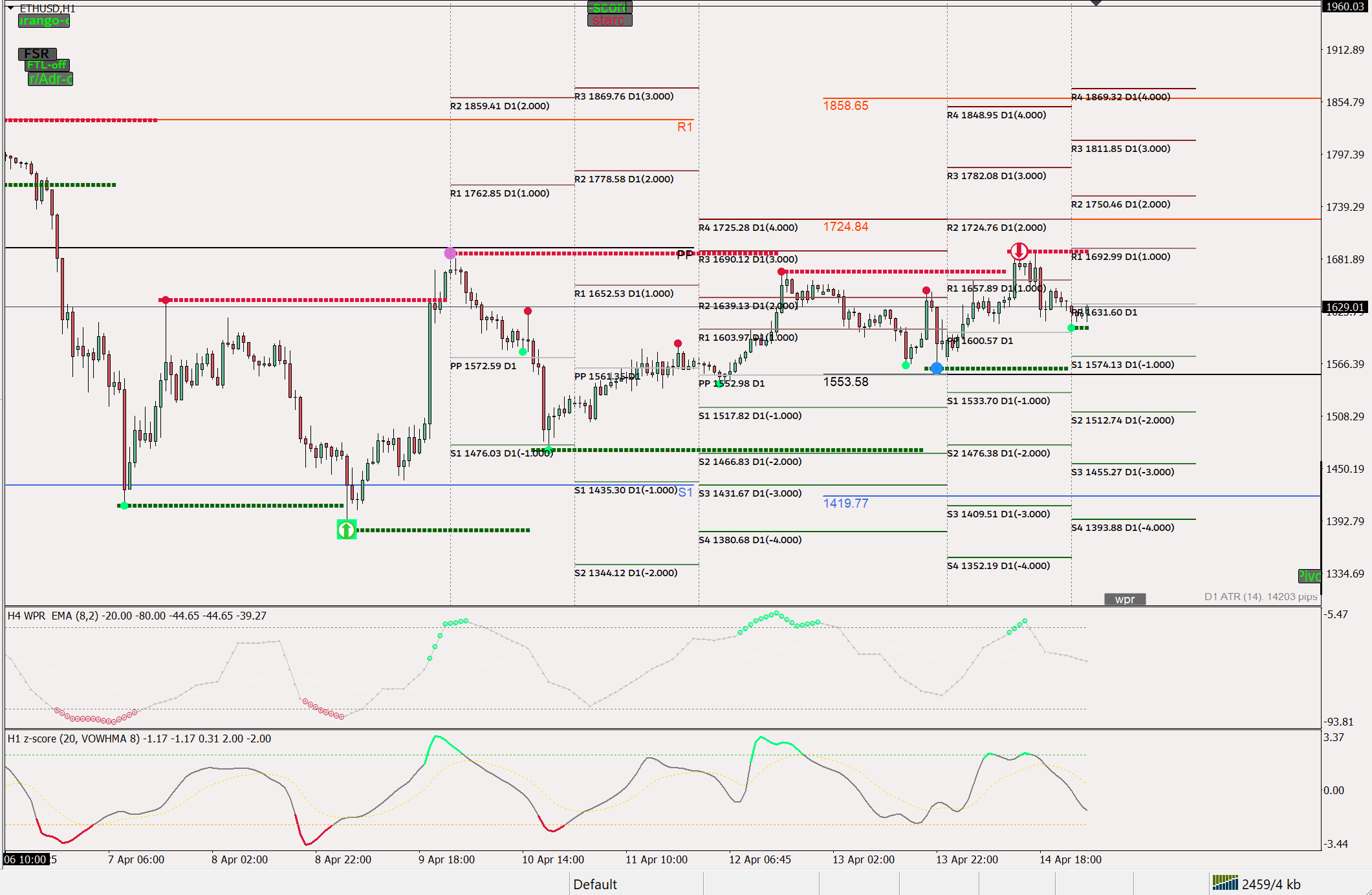 My idea is to evaluate the convergences between the daily, weekly and monthly pivots.