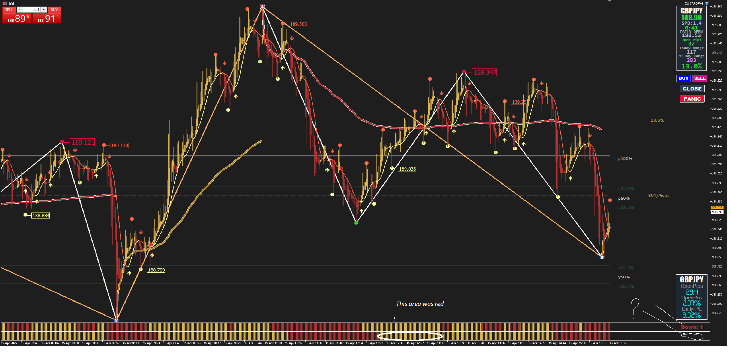 Hi, Cagliostro. Question. I have a top oracle m1 bottom m6. What can you advise to make it as less recolouring as possible? Explain what ‘DOWN:1’ means on the right. Why ‘DOWN’ is not on M6. I just observe it on all charts and I don't have it! I think the lower oracle is not working properly for me. Thanks