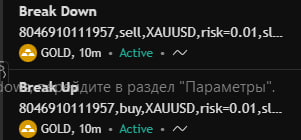 At first, I thought to set trailing stops and breakeven, but then I realized that the opposite signal of breaking the volatility will be exactly in the same place as the previous one, so even in the worst case scenario it will be 0 or a small minus with slippage, but usually plus