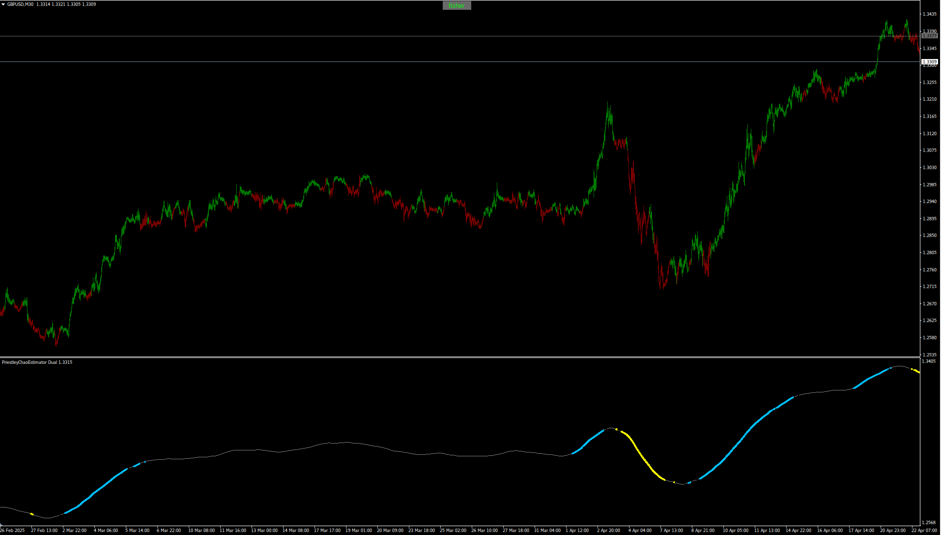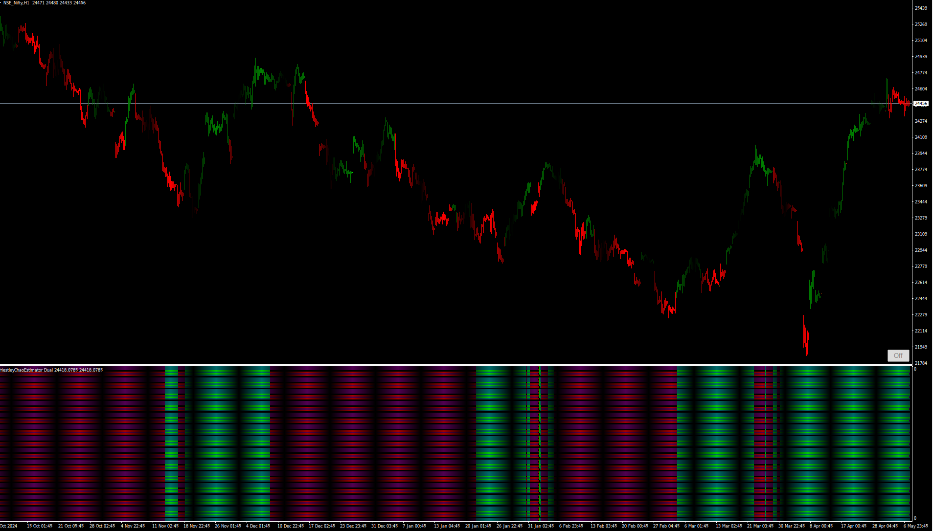 One target is "computational calculation" of divergence is in a sawtooth pattern using a kernel function, by comparing different kernel values and kernel regression, weighting sample points that lie outside the volume of the three regressions in a curative manner. This reveals the divergence between inspections through lateral sawtooth pruning if drawing it with like heatmap. The output is currently plotted using the Gaussian kernel function with Priestley-Chao regression. A Gasser-Müller nonlinear regression engine will also be added. If we for instance look Indian NiftyIndex we can see reversal in advance to come before price does.