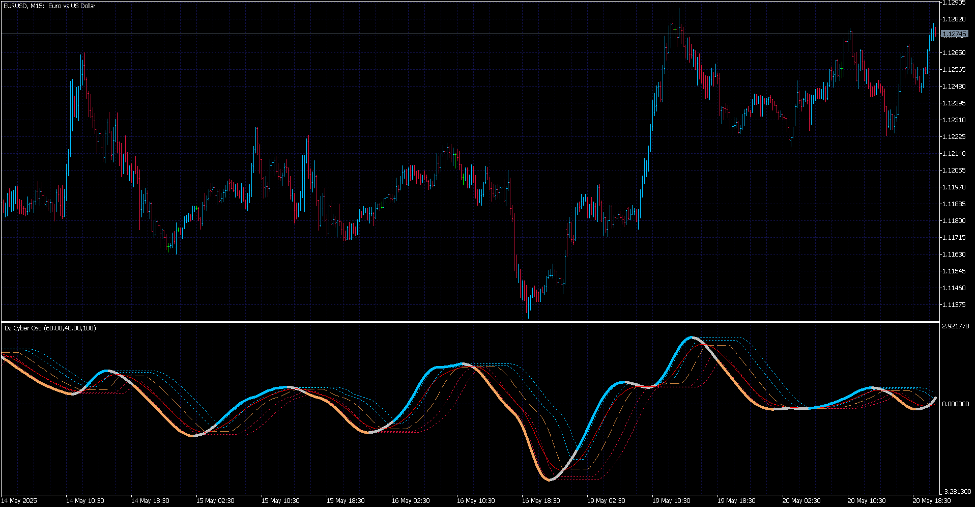 Hello, made this mt5 version, the bands are a little different since the dynamic zone dll doesn't work on mt5, so used quantiles and using percentages to position the bands.Cagliostro wrote: Tue May 20, 2025 8:58 pm Oh the Cyber Cycle! It's a very good one, in reality it's good for indices, metals and crypto too, I tested it a lot in the past.