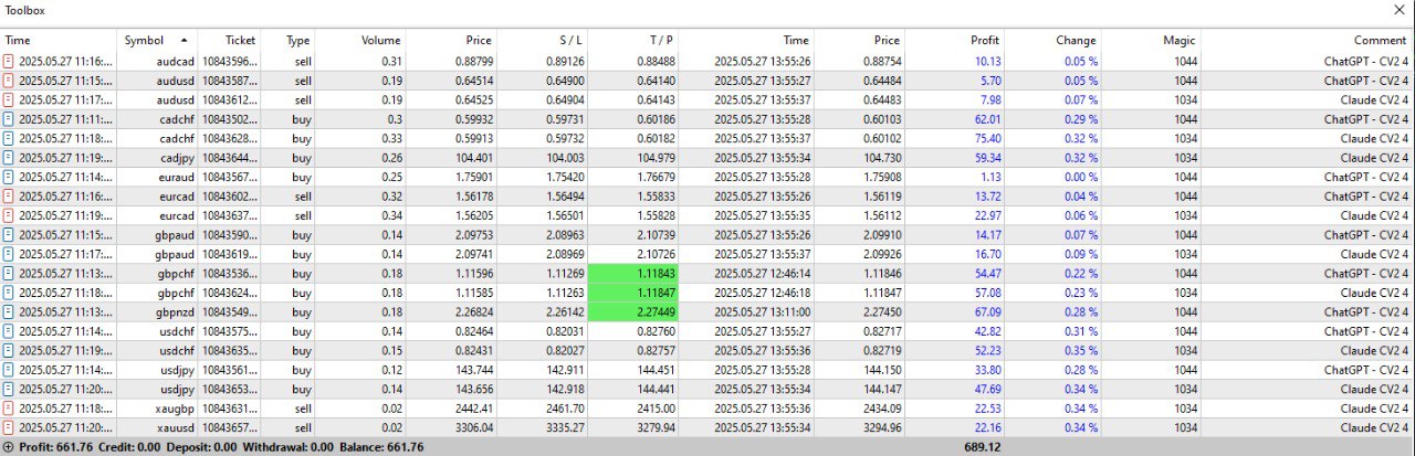 Final result: Claude and ChatGPT delivered almost identical trade suggestions based on 4 TimeLapse CSVs.