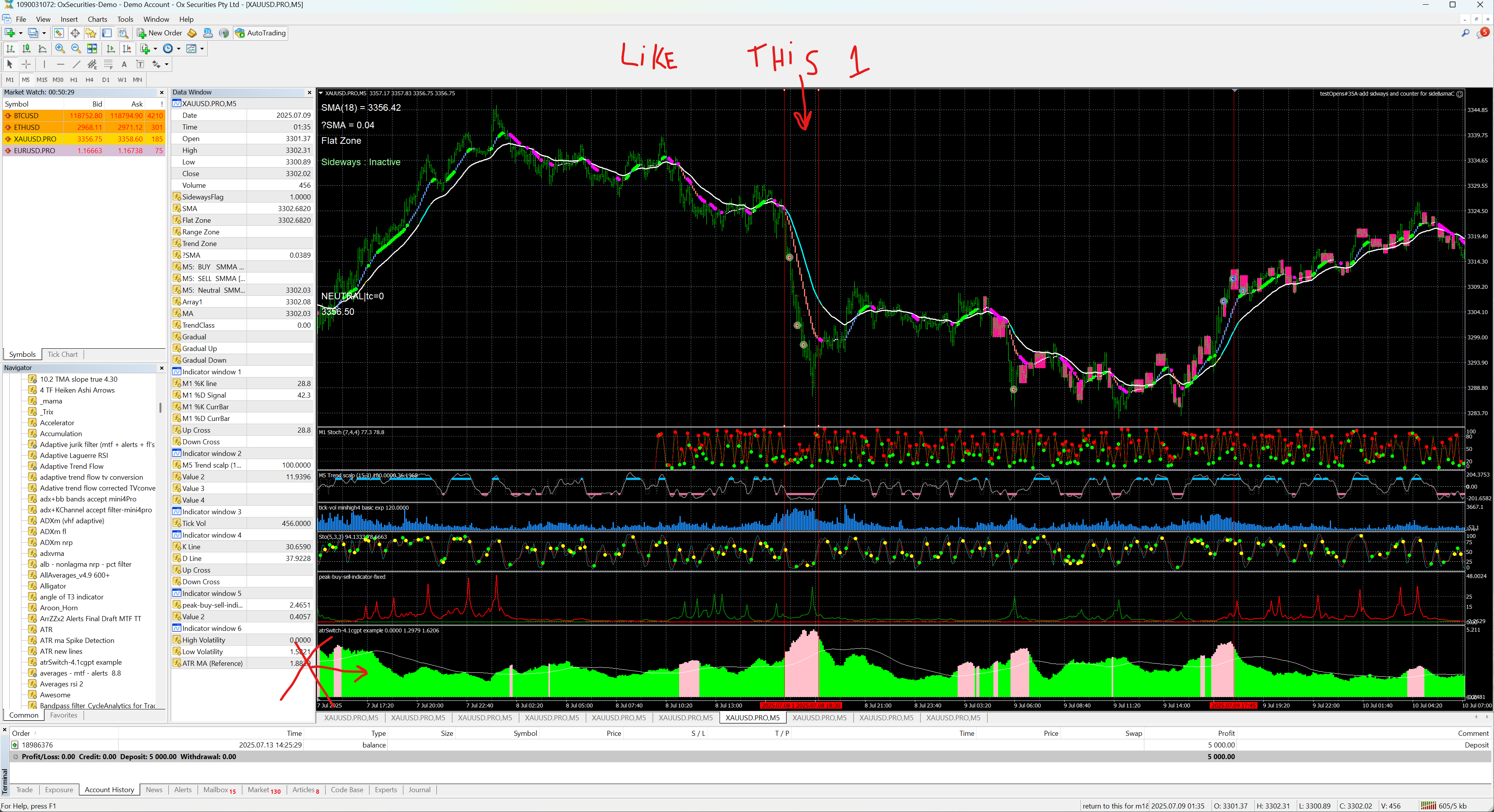 here is a simple atr volatility switch - i am messing with wanted to post, i may include as a filter for a severe slope signal strategy i have been working on basic setting usually indicate the more aggressive price action moves i am targeting looked around not sure i seen to many things like this but they may be on here some where?