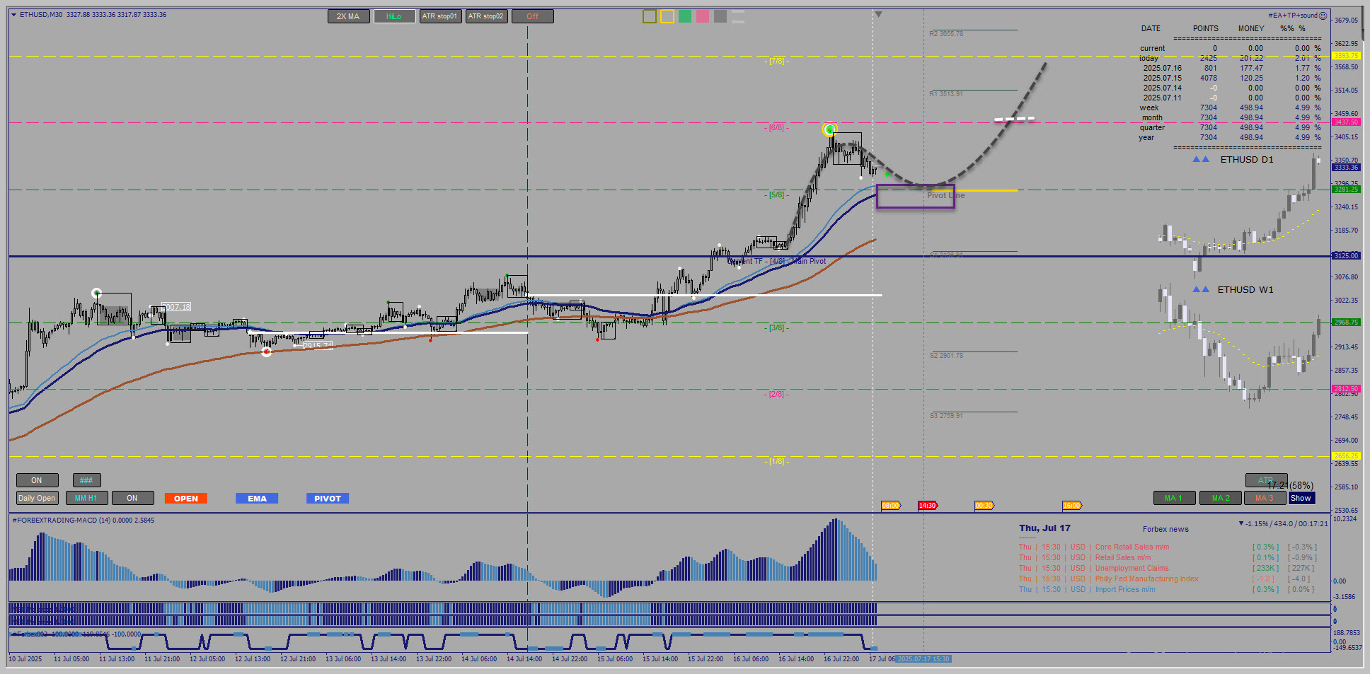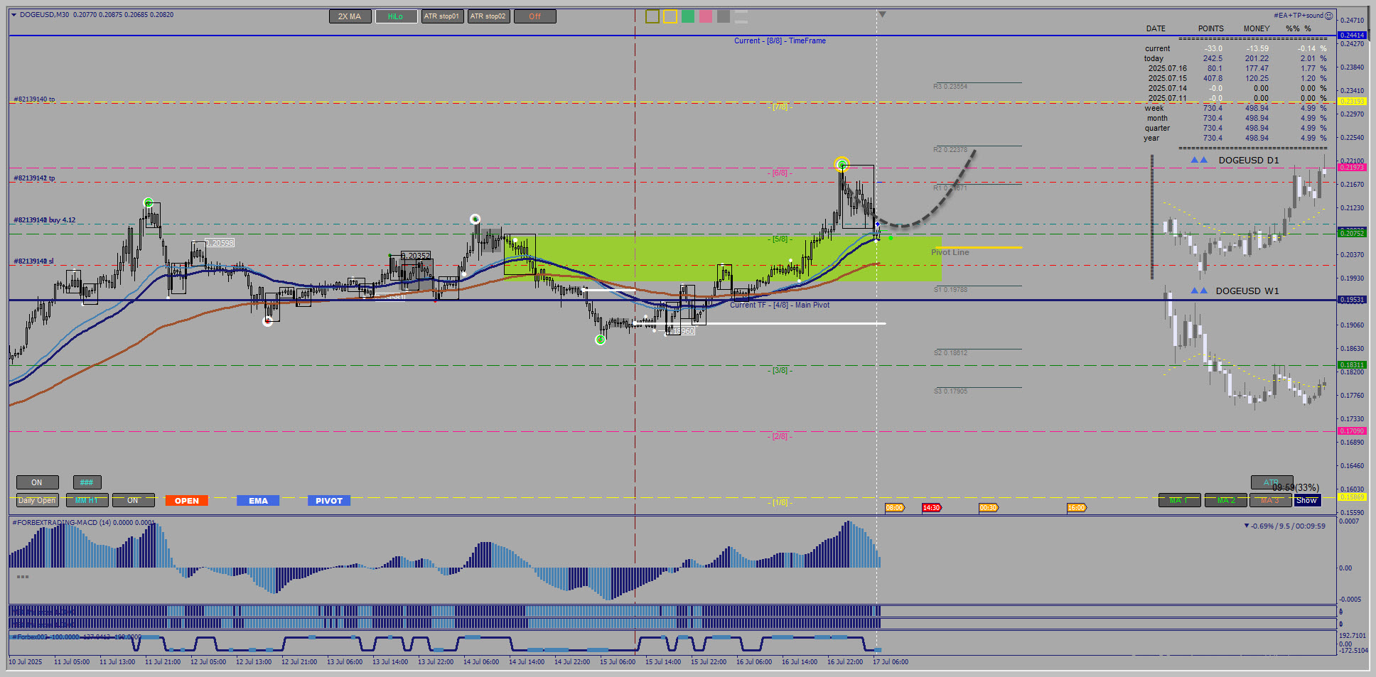 17..07.20250 a bite on DOGEUSD !? M30 and another crypto perspective on ETHUSD, still rising