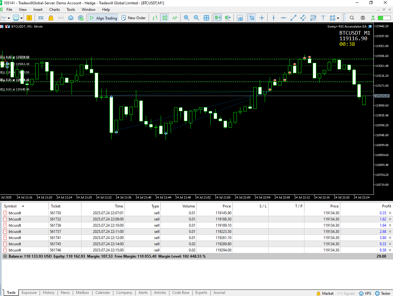 It closed the three buys and opened sells as per RSI value.