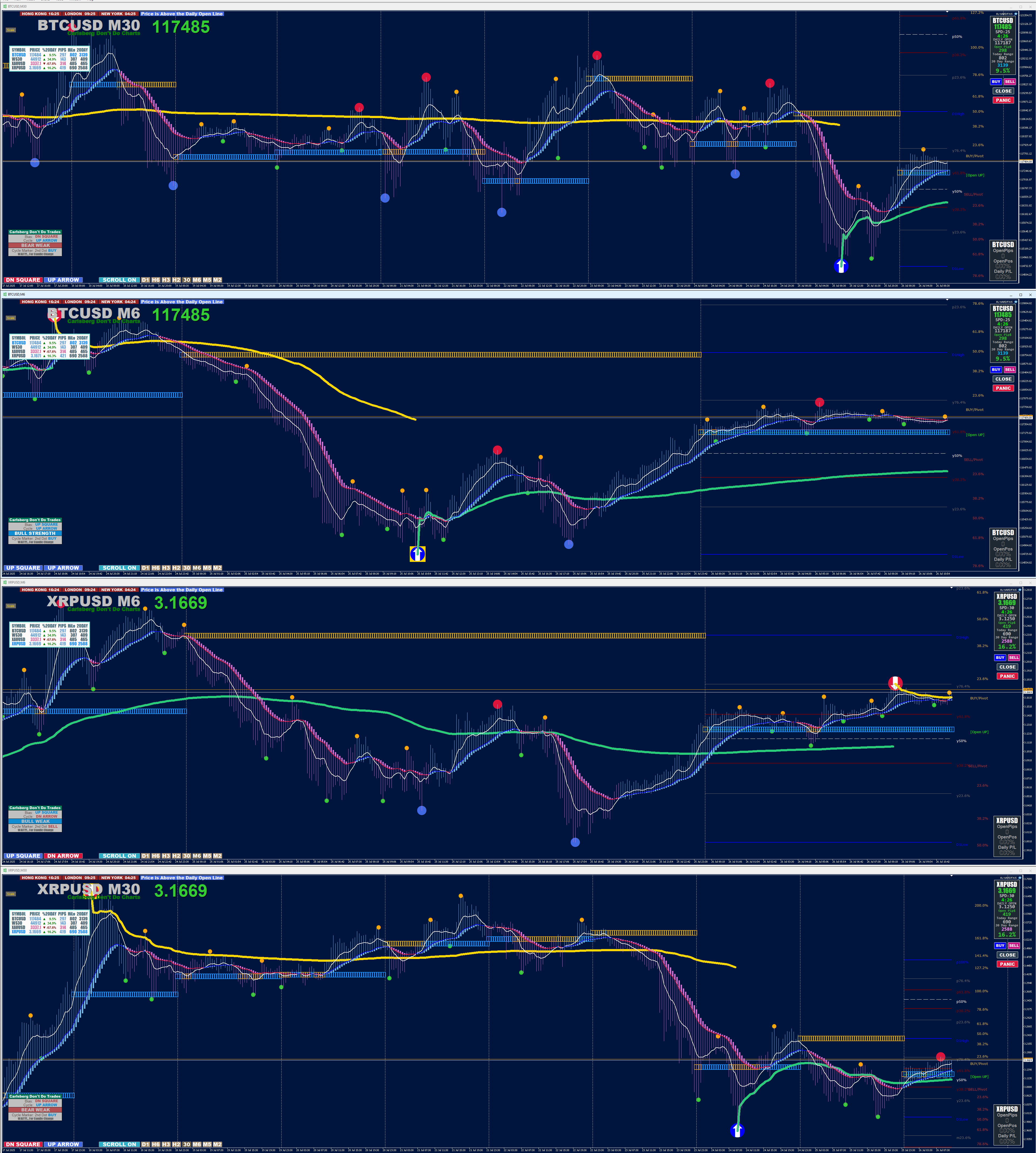 - This extends trade duration, letting you ride trends longer (e.g., until your daily target is hit) without sub-window clutter no need for the likes of RSI, Stoch, or MACD—keeping charts clean and focused on price action.