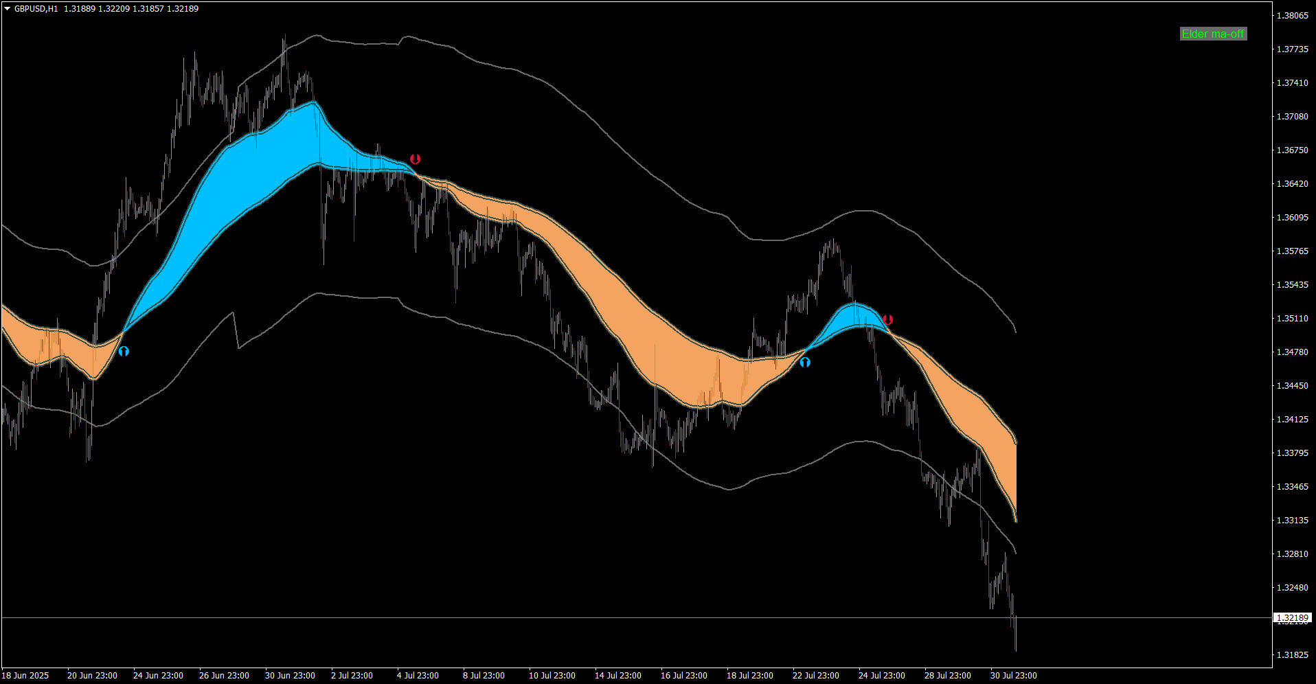 The auto envelope automatically sizes channels by calculating a standard deviation for the last n bars. It is designed to change value at most once a week (once a month on a weekly chart), making it suitable even for intra-day data (use the ‘Fixed channel size’ parameter to switch from one mode to the other).