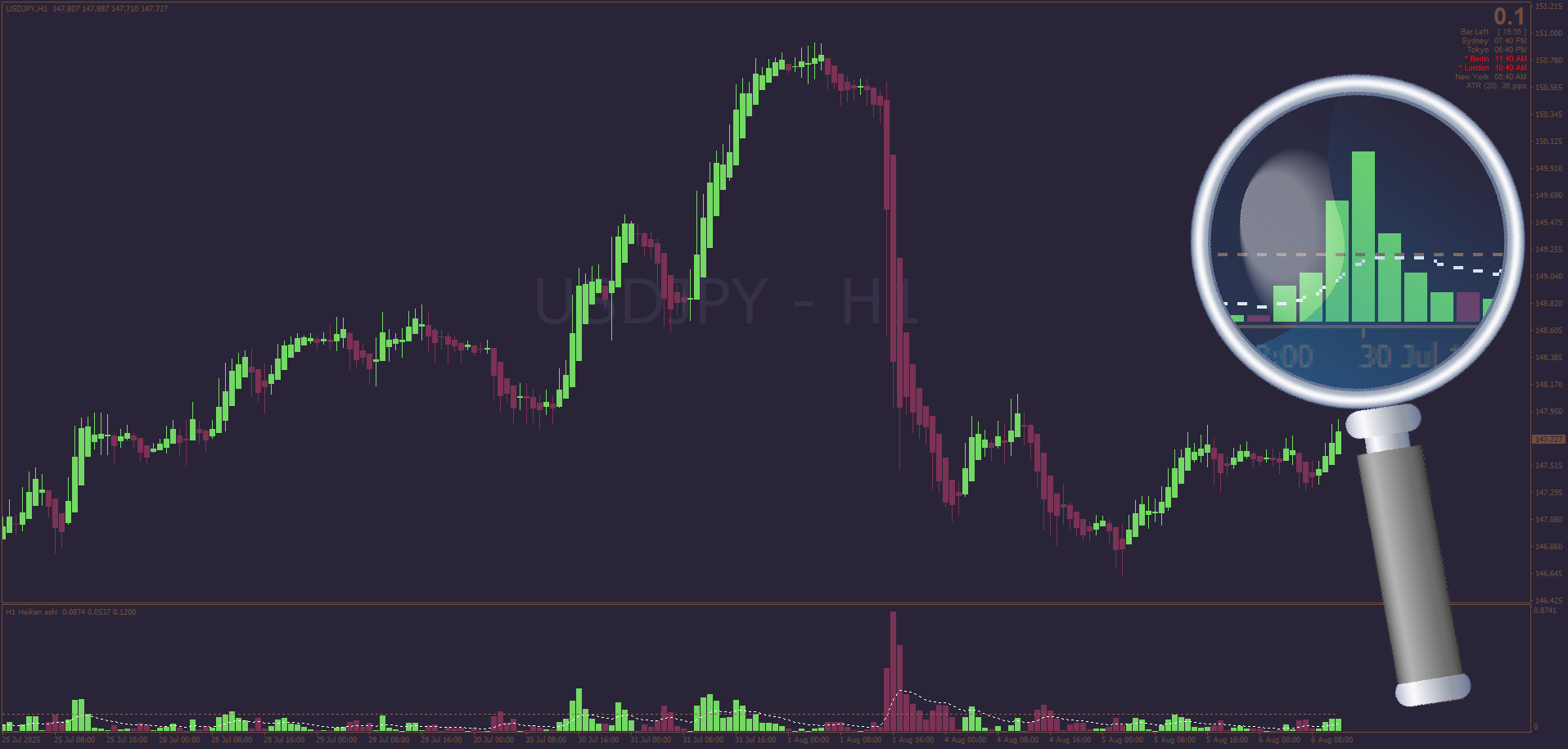 This Kvak's Heiken Ashi indicator which displays as a mountain Histogram like the Waddah Attar Explosion. What's unique about it is it comes with a signal line & a signal "level" display for gauging trends & volatility "bursts". Be sure to try it, here: post1295570120.html#p1295570120