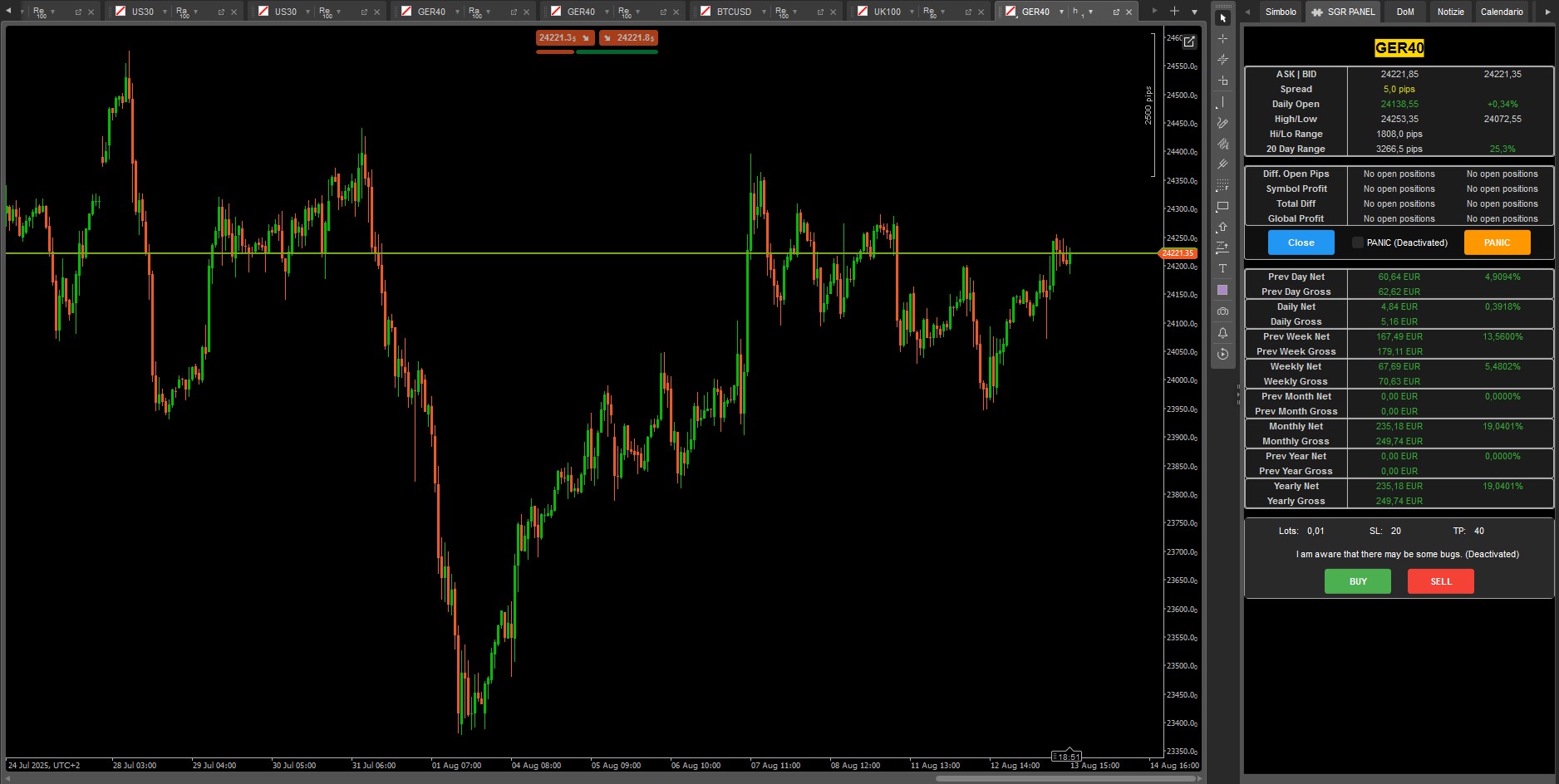 • I moved the "Close Positions" section below the "Open Positions Stats" section. It seemed more coherent to place it in that position. It now works as follows: If there are open positions and the symbol is changed, the "Close" button will be disabled if there are no open positions in the selected symbol, requiring the use of the "Panic" button instead. This helps prevent unexpected bugs.