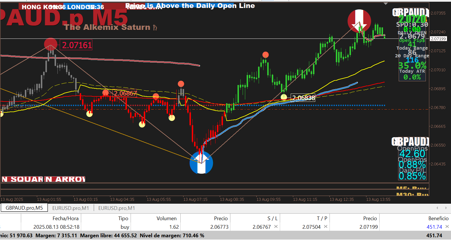 13/08/2025 GBP/AUD Compra 250 +750 +1,50 % Ratio 1:3 riesgo 0.5%