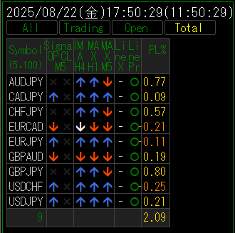 - M5 : An “O” signal is displayed when the open and close prices cross the line.