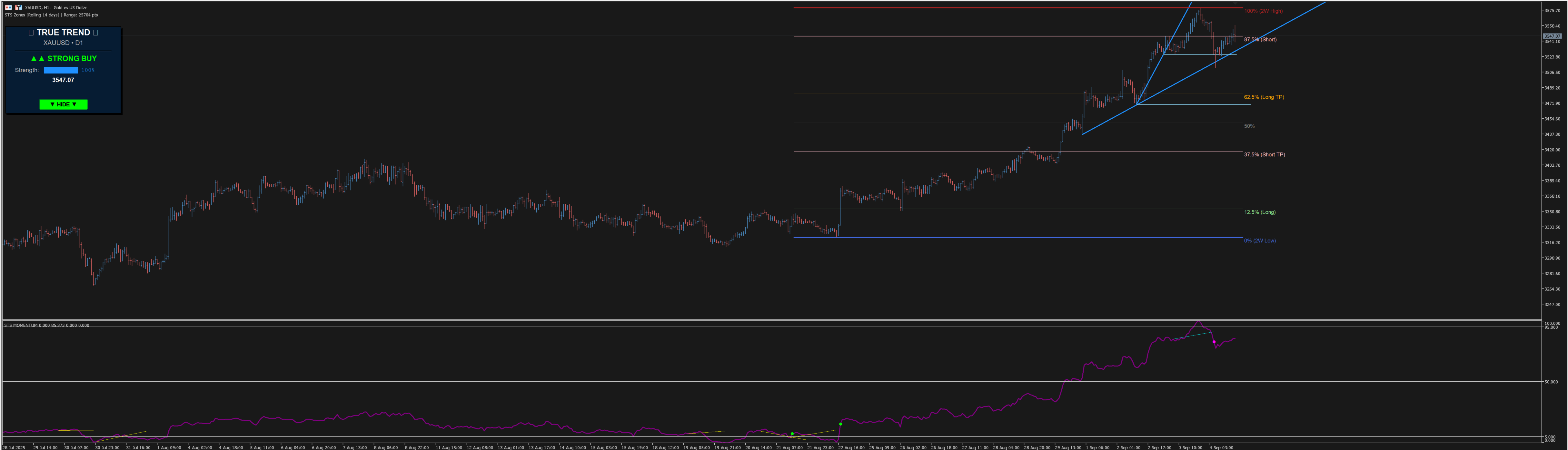 -STS Zones that automatically draws updated last 2 weeks (fixed or rolling) high/low and the fibo levels