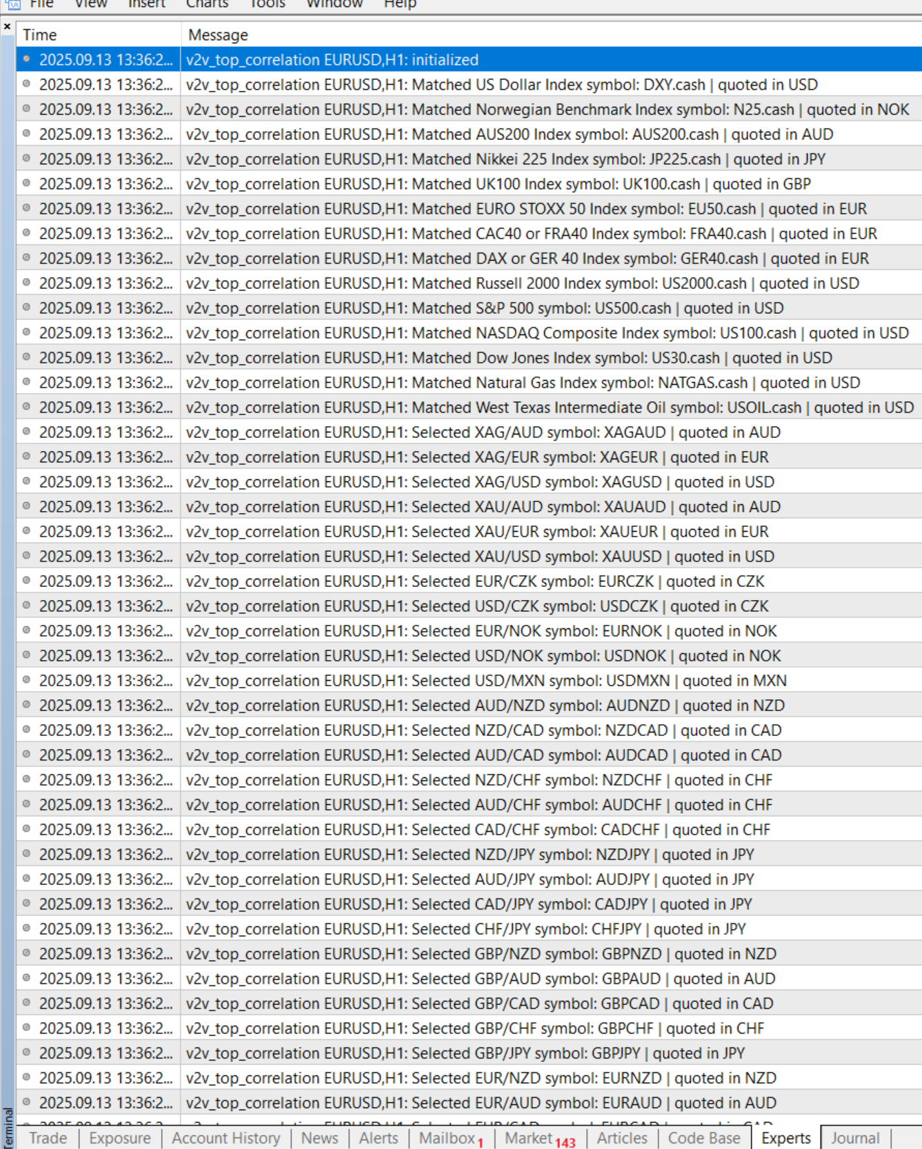 All pairs and instrument symbols needed by this system are automatically detected and activated, even those hidden in the Symbol list, including those with known prefixes and suffixes.