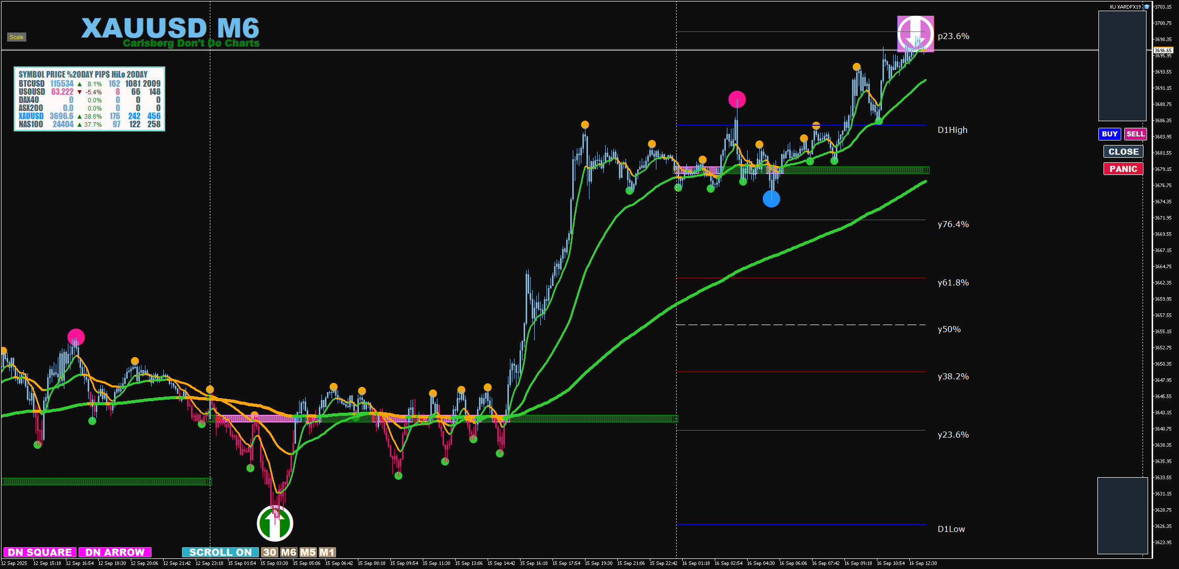 okay so in this case do you consider Arrows as Big Dots also ? for instance in this case, the big blue dot appears lately after 1st candle color change following UpArrow. it would have been wise to enter on candle color change at this time i guess... or not ! (especially if one follow the minidot enter rule to enter gradually in the same direction