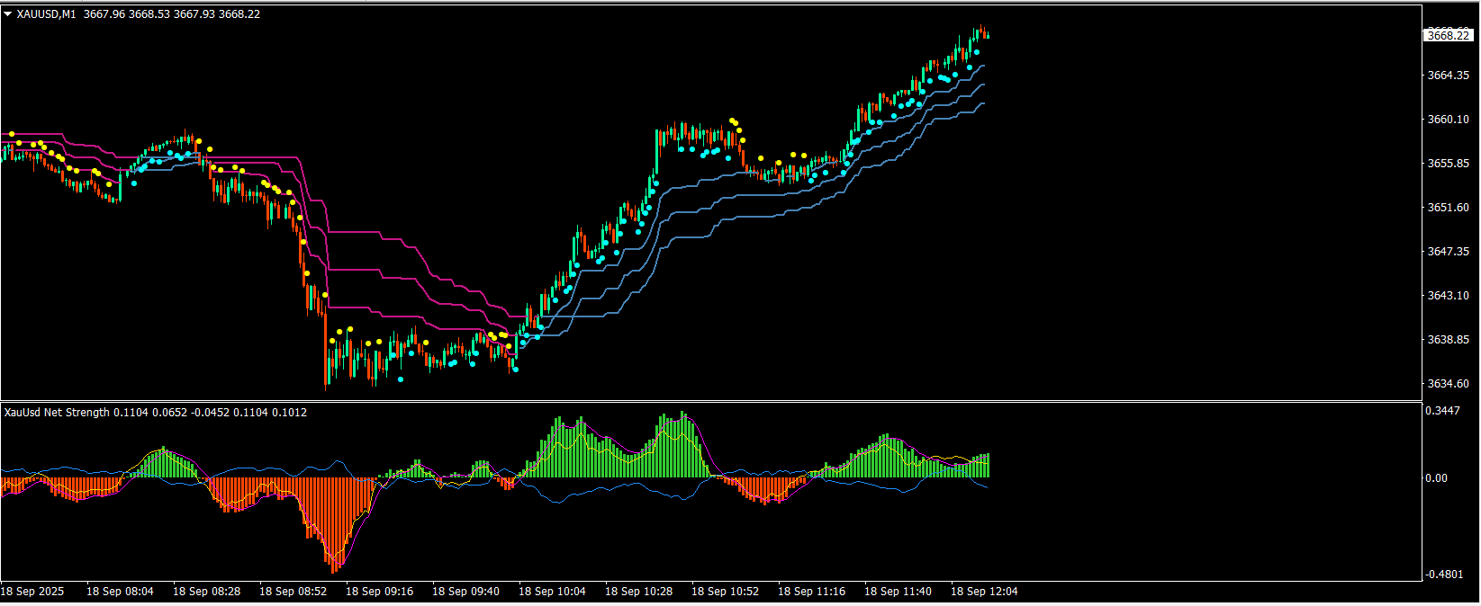 XauUsd Net Strength and Fibo Trend Lines