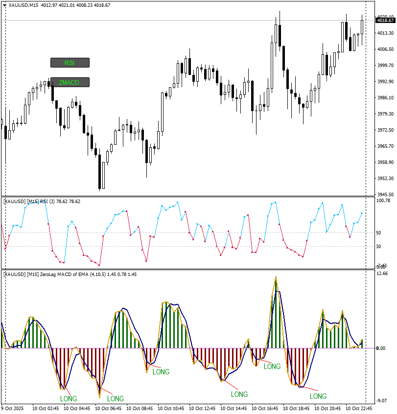 Another easy to use indicator is the ZeroLag MACD (4,10,5).