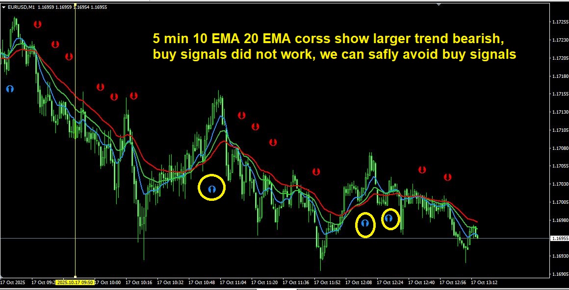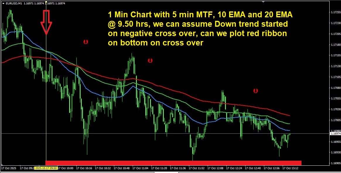 To plot higher TF 10 EMA and 20 EMA corssover direction on chart, so that we can take trades only in direction of higher trend as shown in chart