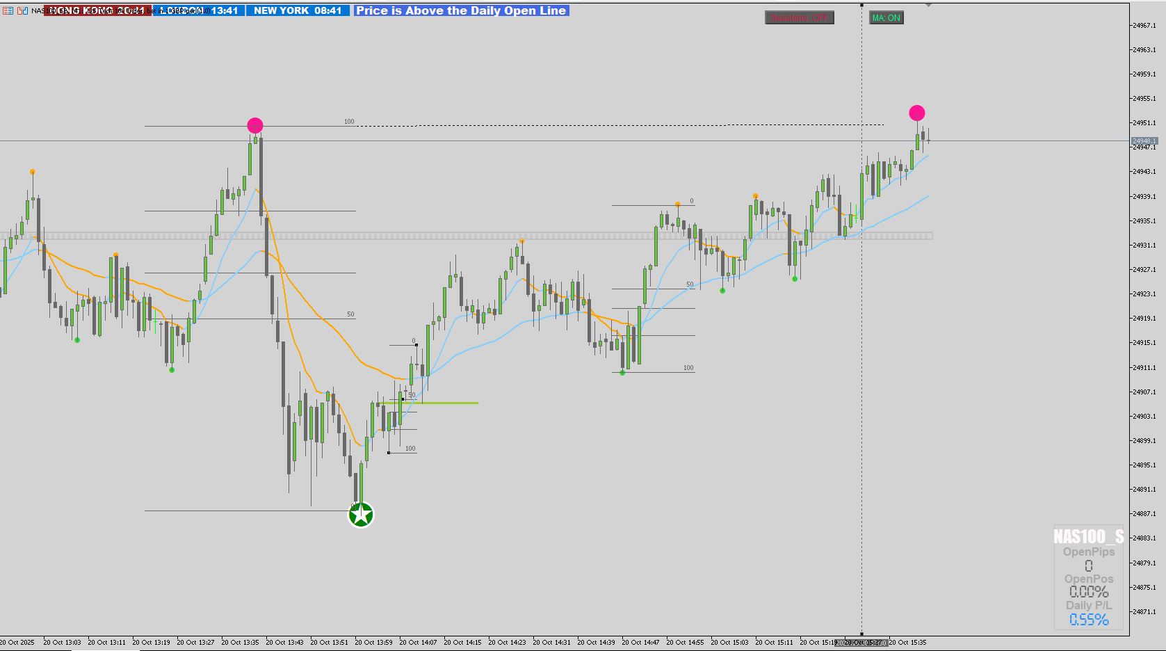 Hindsight trade: The first order block after the star (SEMA 275) could have yielded 20 pts at 1:4 in minutes if executed correctly.
