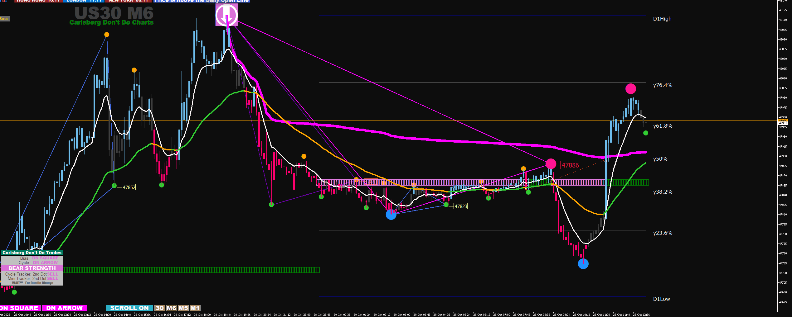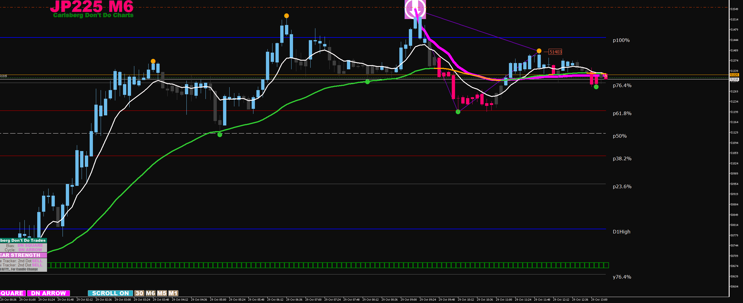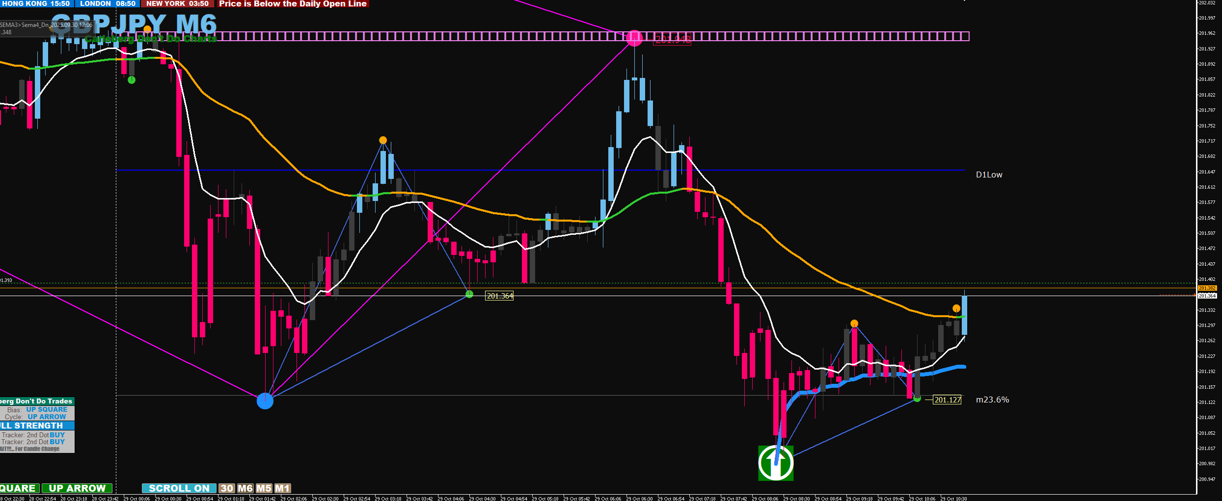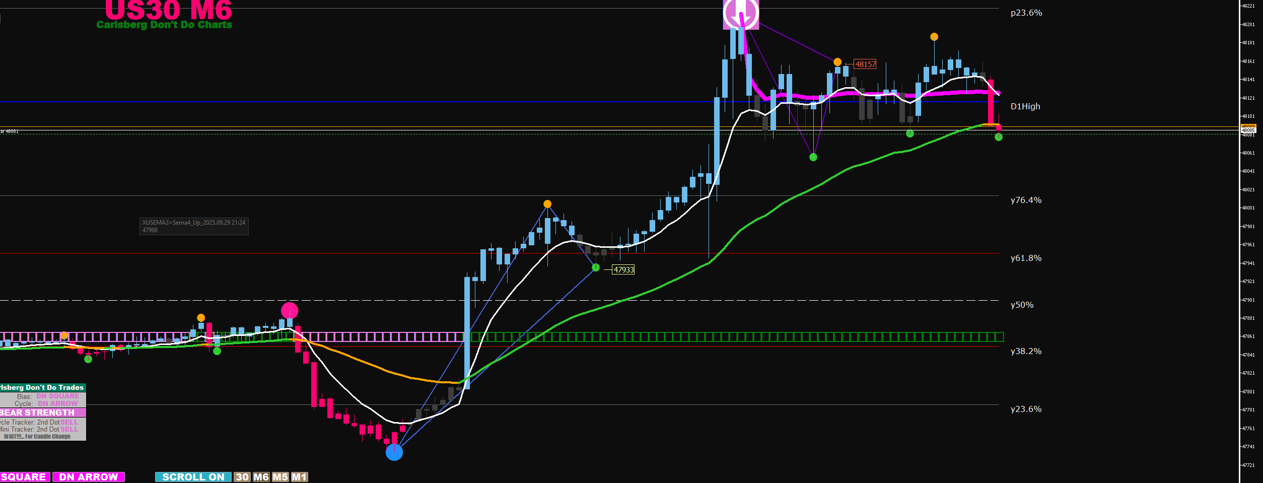 30M arrow align with 6M arrow + 2 big dots exit at arrow on 6m stop loss below second big dot